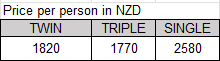 Price From | 1820 NZD (2 PAX)